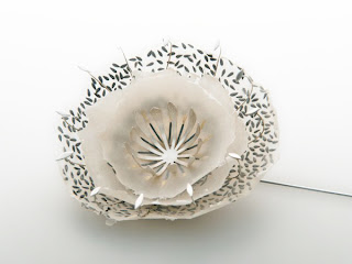 A gdy jeszcze biżuteria powstaje z papieru (lub z dużym jego udziałem) nie mogę przejść obok tego obojętnie. Chcę pokazać na swoim blogu takich właśnie twórców i ich wytwory, które mnie oczarowały. Jako pierwsza wystąpi Sabrina Meyns. Tworzy niezwykle delikatną biżuterię wykorzystując ręcznie czerpany papier oraz metale szlachetne i najczęściej nasiona. Sabrina jest zafascynowana delikatnością kwiatów, subtelną przejrzystością płatków i tę fascynację odzwierciedla jej twórczość.